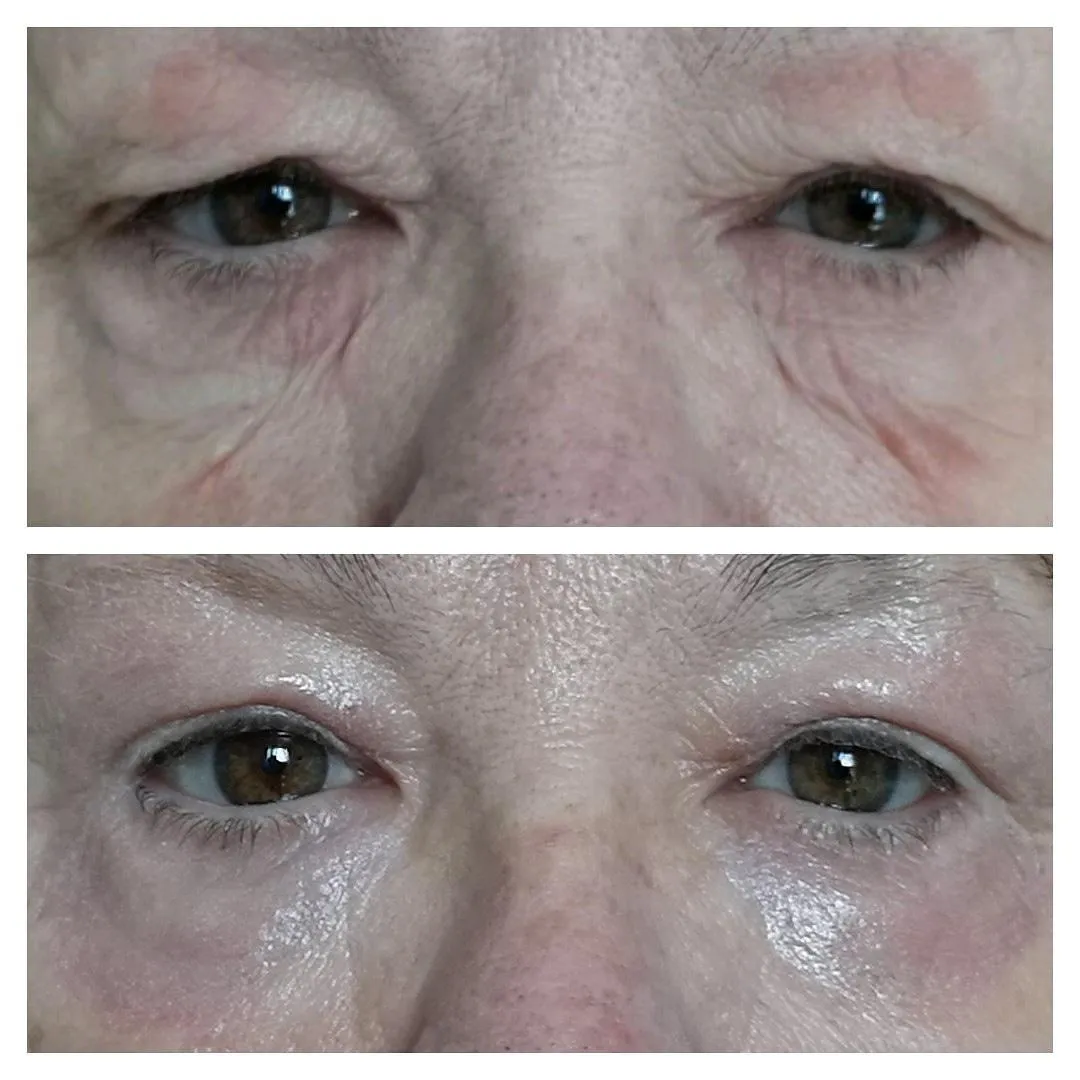 Plasma Pen uses advanced plasma energy to tighten and lift loose skin around the eyes by creating controlled micro-points on the skin’s surface. This triggers immediate collagen contraction and stimulates new collagen production, resulting in firmer, smoother, and more lifted eyelids — without surgery, cutting, or stitches.